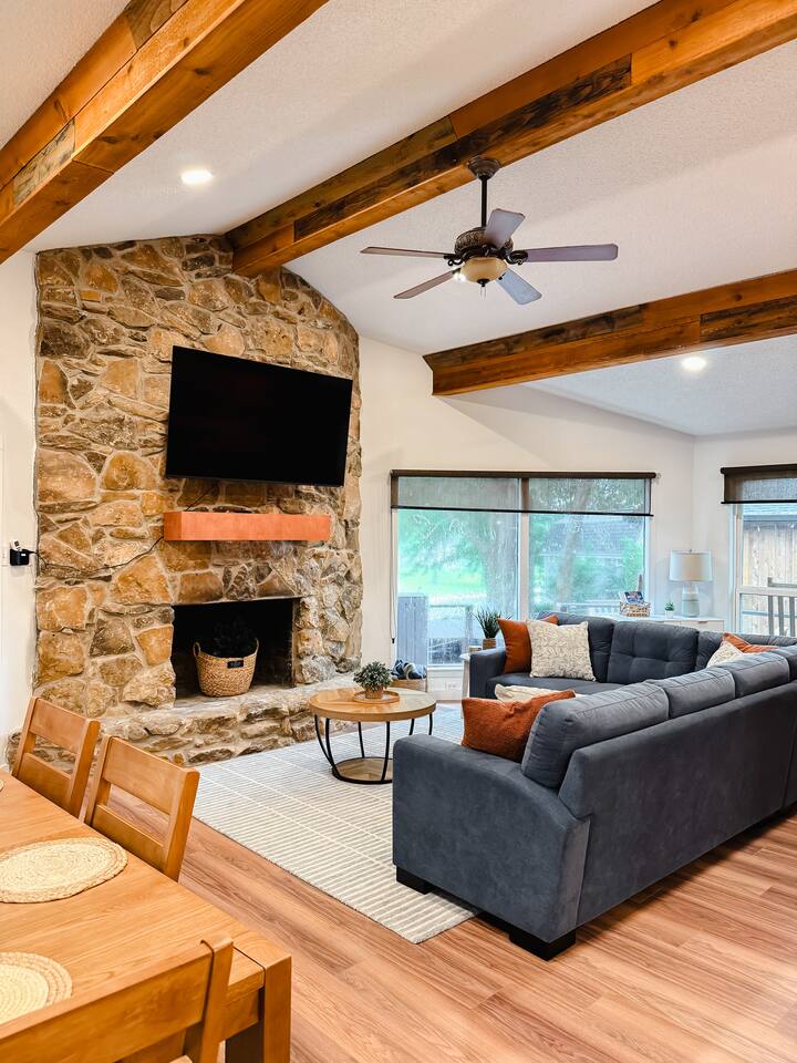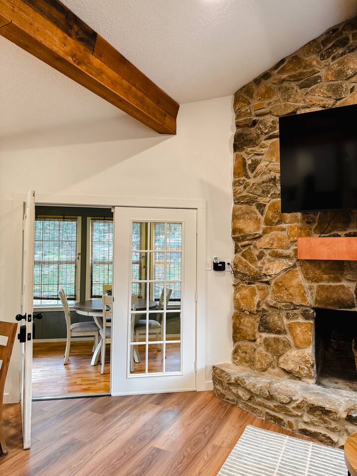 Guests can access 100% of the space. Please keep in mind our friendly neighbors are close and full time residents so please observe quiet hours from 10 PM - 8 AM for outdoor activities and loud indoor activities. Access to hot tub and kayaks is included. The indoor fireplace is non-functional and not for guest use. Community pool and playground access available seasonally. Neighborhood pool is now closed for 2025 season.