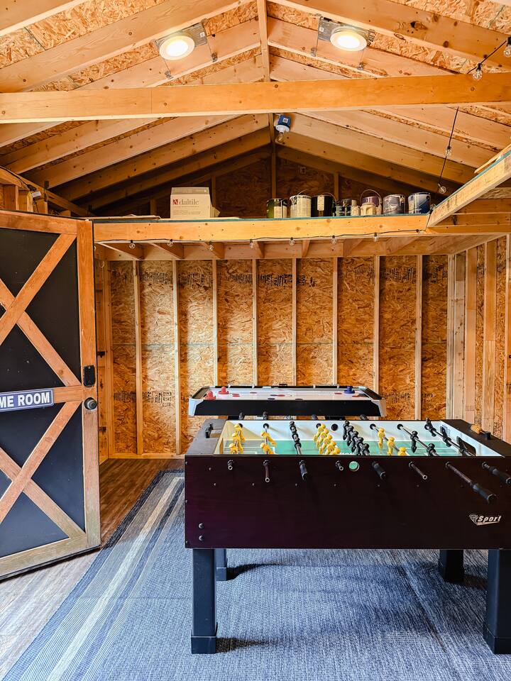 Everything on the property is included in your stay!! Community pool and playground access available seasonally. Parking Parking: The long double driveway accommodates up to four vehicles total, including cars, trucks, or boats. Boat trailers and all vehicles must fit fully on the driveway—no street parking available. Outdoor Amenities Enjoy beautiful canal views with full lake views just a short walk away. The backyard features: -Fire pit (firewood not included) -Kayaks -Outdoor children’s playhouse -Hot tub -Spacious yard with lawn games -Grill -One open-air deck, one patio, and one screened-in deck -Ample outdoor seating and dining areas -A yard that is 90% fenced, with an opening leading down to the water Additionally, the shed garage is climate-controlled (AC and space heater) and serves as a game room featuring: -Foosball -Air hockey -Yard games (e.g., cornhole, croquet, bocce ball, ladder toss — game selection may vary) Indoor Living The open-concept main living area includes a fully stocked kitchen, dining space, and a cozy living room with a large sectional sofa and TV. An adjacent enclosed porch with a space heater/AC unit offers additional dining space or a perfect spot for game night. Total table seating is for 10. We provide card and board games, throw blankets, and other comforts to make your stay relaxing and fun. Kitchen is fully stocked including a complimentary coffee bar! Bedrooms (3 total) Primary Bedroom: Queen bed, large closet with dresser and hanging space, plus a travel pack-n-play (sheets included) Second Bedroom: Queen bed, closet with dresser Bunk Room: Three bunk beds with under-bed storage, loveseat, and a converted playroom inside the closet featuring a loft, train table, books, and toys. Includes a dresser. Bathrooms (2 total) Bunk Room Bathroom: Double vanity, combo bathtub/shower Hallway Bathroom: Single vanity, glass-enclosed shower Laundry Washer, dryer, and laundry supplies (including detergent, iron, and ironing board) are available for guest use. Liability waiver is required to confirm bookings. Add on day access on check in/check out is an optional add-on pending availability. We do not offer refunds for low water levels or county burn bans limiting fire pit use. Off season for the lake is Oct-April and water levels are unpredictable.