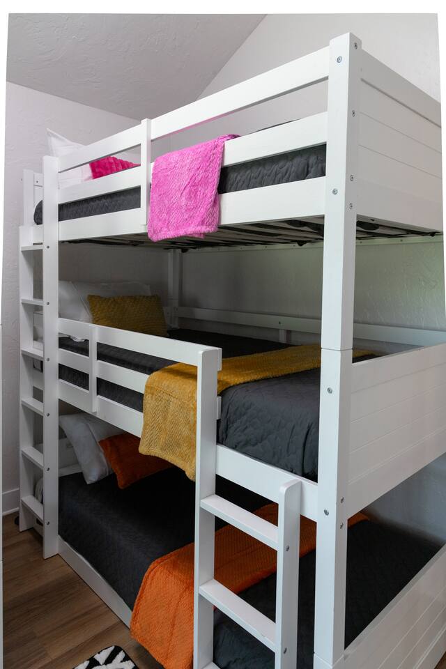 Close to Pinnacle Golf Club Everything is included in your stay!! Parking The long double driveway comfortably accommodates up to 3 vehicles. Street parking is not available. If bringing a boat, please consider it as one of the three vehicles and refer to the logistics below for more details. Boat Lift & Cradle Use of the boat cradle, lift and neighborhood boat ramp is included for guests. The neighborhood boat ramp is conveniently located 1 property away. The boat cradle & life can accommodate a maximum of 6,000 lb boats and maximum of 26 feet in length. However, please notify the host if you are bringing a boat as the water level at the slip is only ever 3' max and often lower during our off season (October-April). Outdoor Amenities Enjoy beautiful cove views. The backyard features: -Table top fireplace -Lounge chairs -Grill -Covered patio -Ample outdoor seating and dining areas -Hot Tub Indoor Living The open-concept main living area includes a fully stocked kitchen, dining space, and a cozy living room with a large sofa and TV. Total table seating is for 6 with 4 seats at the island bar. We provide card and board games, throw blankets, and other comforts to make your stay relaxing and fun. Kitchen is fully stocked including a complimentary coffee bar! Bedrooms (3 total) Primary Bedroom: King bed, closet with dresser hanging space, plus a travel pack-n-play/ Second Bedroom: King bed and closet Bunk Room: Two bunk beds THREE levels high. Very low clearance between beds. TV and closet. Bathrooms (2 total) Master: Double vanity, combo bathtub/shower Hallway Bathroom: Single vanity, combo bathtub/shower Laundry Washer, dryer, and laundry supplies (including detergent, iron, and ironing board) are available for guest use. Liability waiver is required to confirm bookings. Add on day access on check in/check out is an optional add-on pending availability. Close to Pinnacle Golf Club