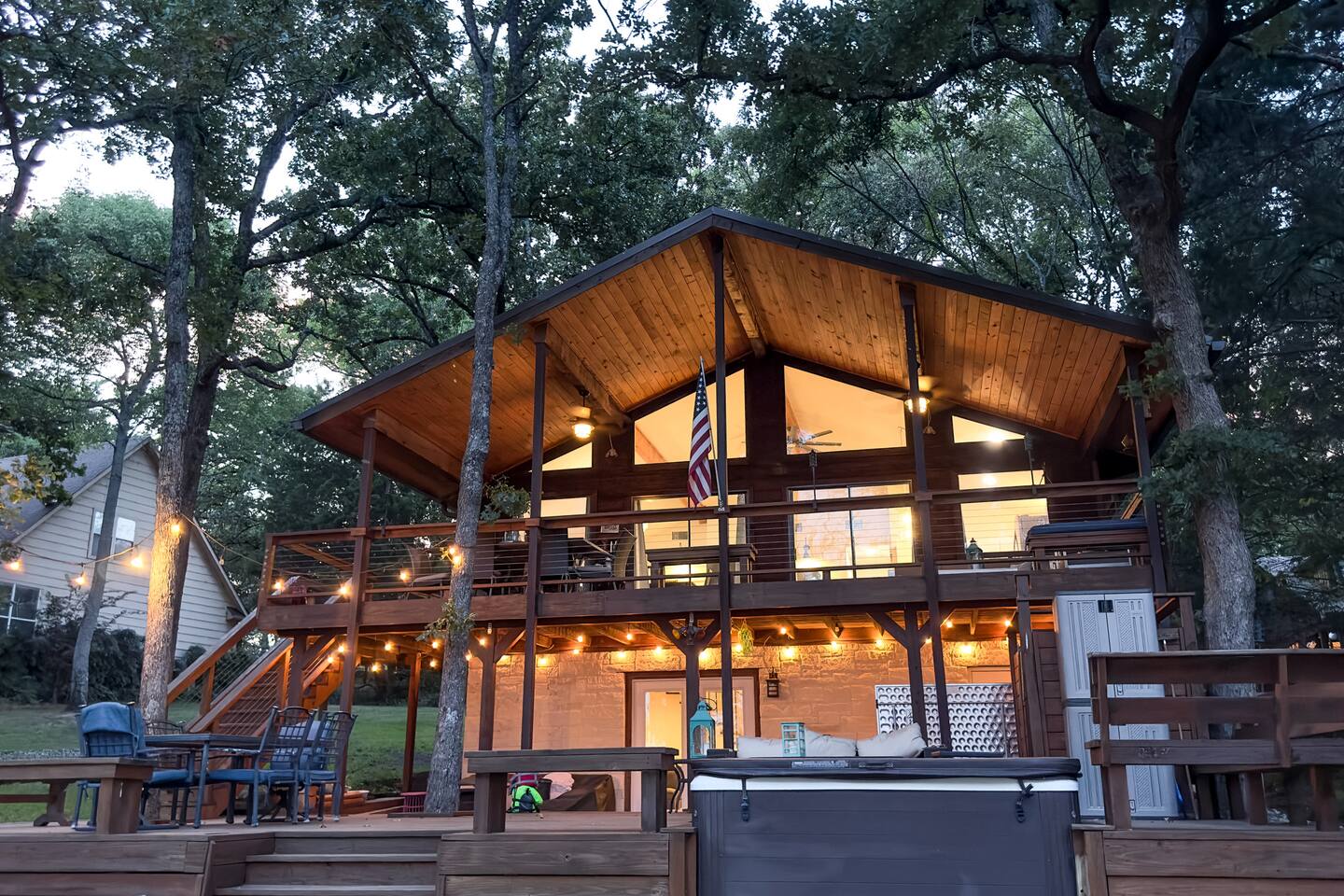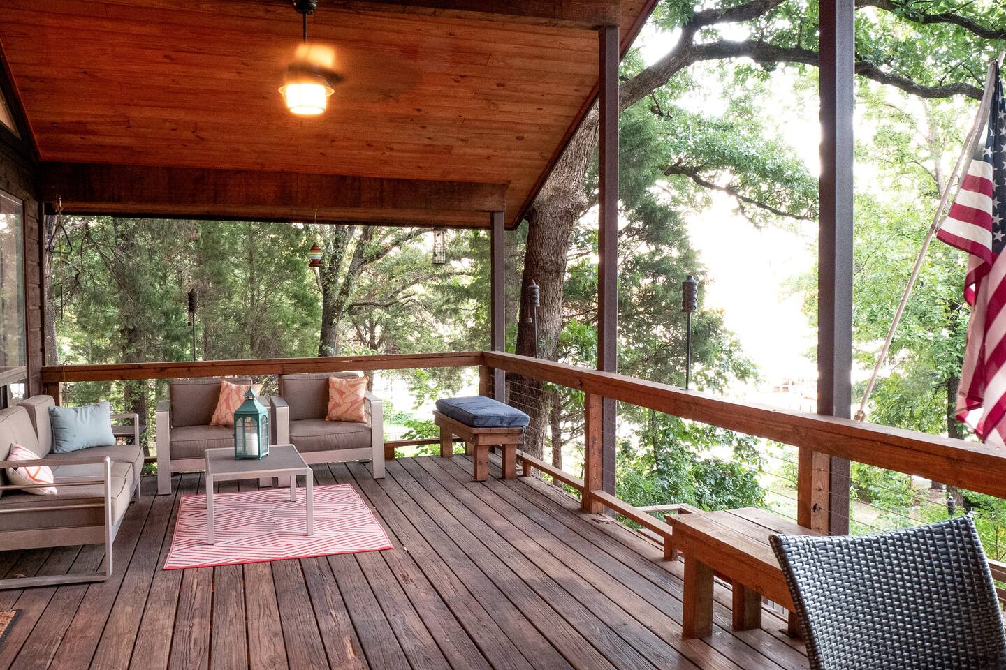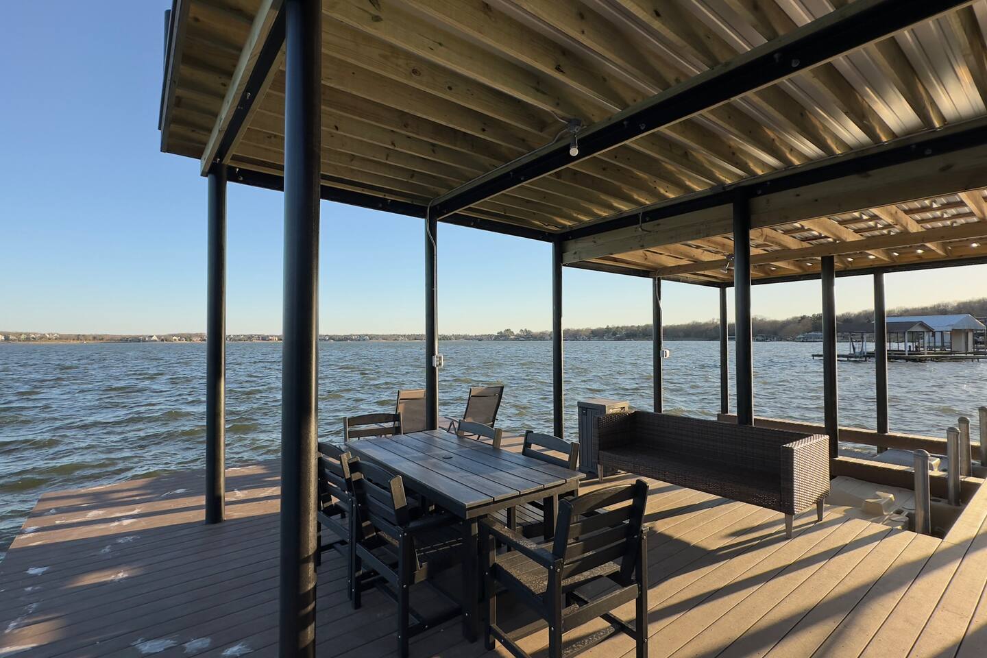 NEW DOCK!! This modern lake house, sleeps 15 and sits in a quiet wooded area on Cedar Creek Reservoir. Access to the hot tub, grill, kayaks, & paddle boards included! Enjoy the 5 bedrooms (incl. bunk room), 3 baths, 2 patios, 2 living rooms, a fully stocked kitchen, & a private boat house for fishing & swimming nested on .75 acre lot! Relax on the upper deck, open-air patio, or fire pit by the water. Full day access on check-in or check-out days is available as an option, pending availability.