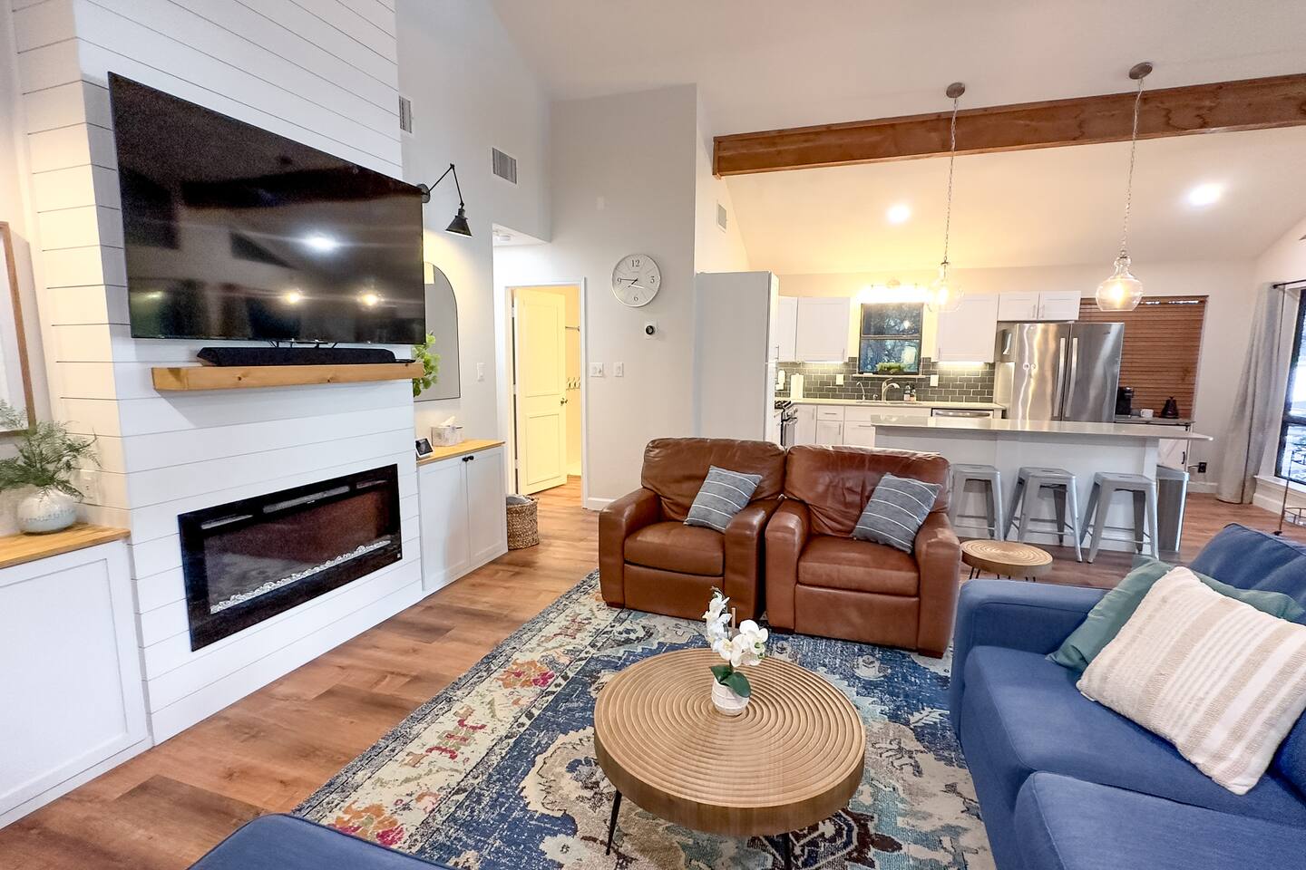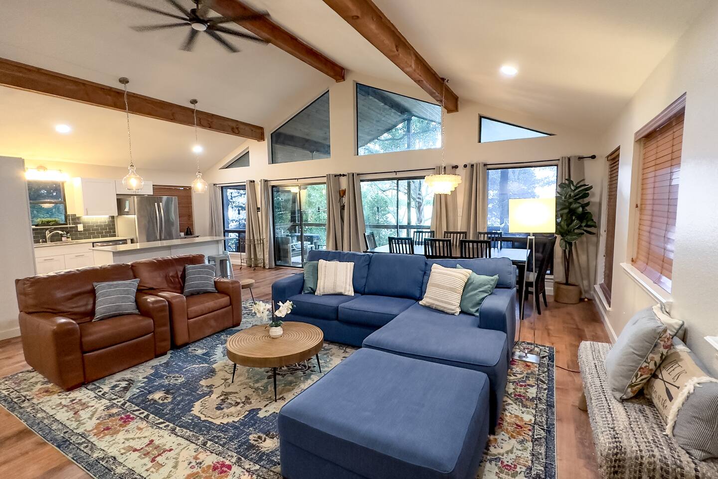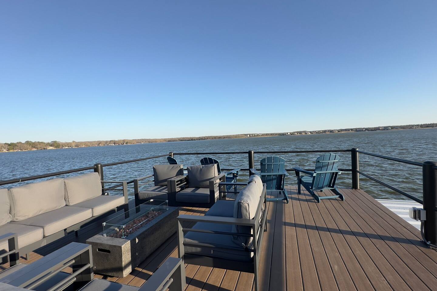 NEW DOCK!! This modern lake house, sleeps 15 and sits in a quiet wooded area on Cedar Creek Reservoir. Access to the hot tub, grill, kayaks, & paddle boards included! Enjoy the 5 bedrooms (incl. bunk room), 3 baths, 2 patios, 2 living rooms, a fully stocked kitchen, & a private boat house for fishing & swimming nested on .75 acre lot! Relax on the upper deck, open-air patio, or fire pit by the water. Full day access on check-in or check-out days is available as an option, pending availability.