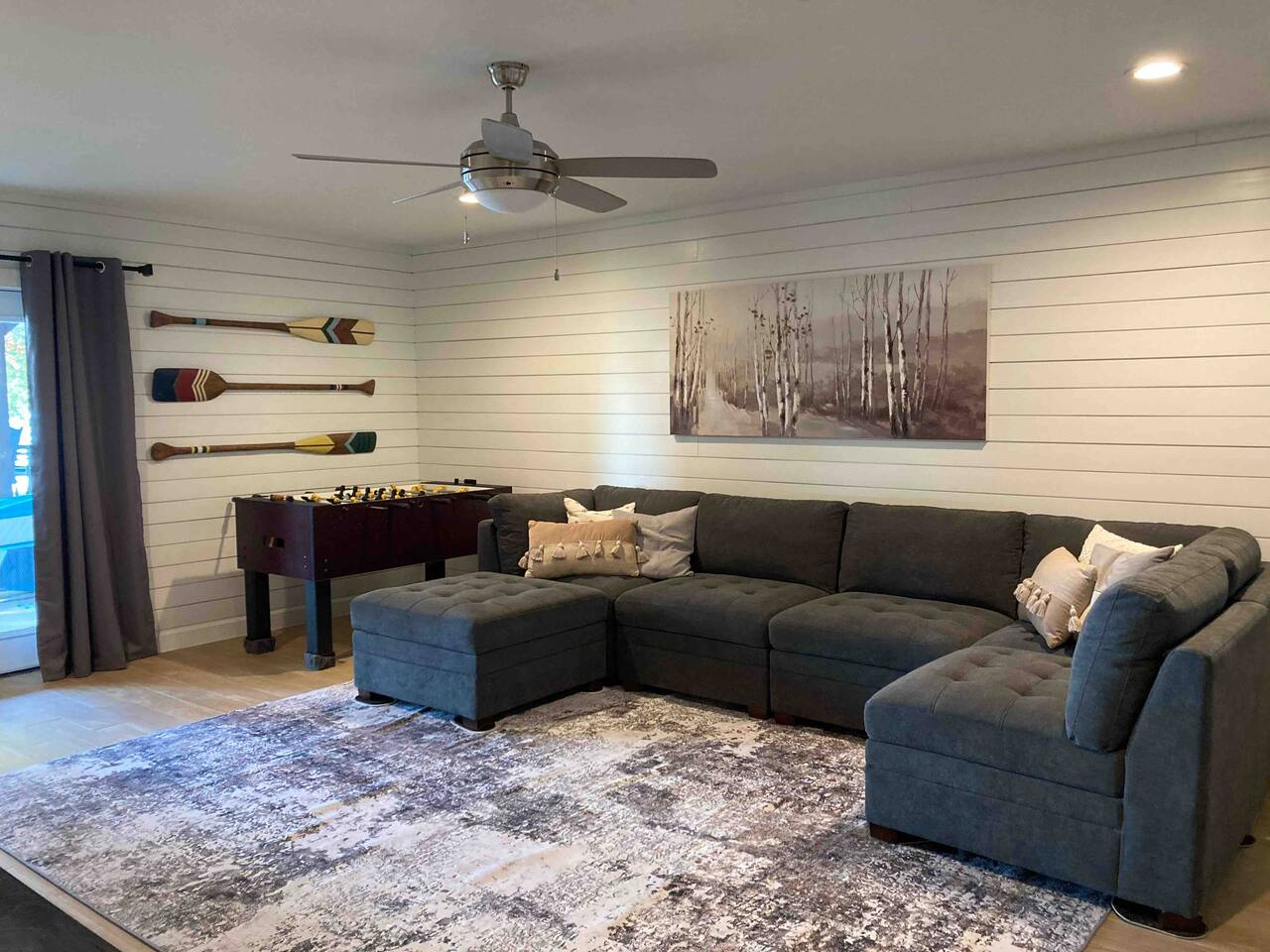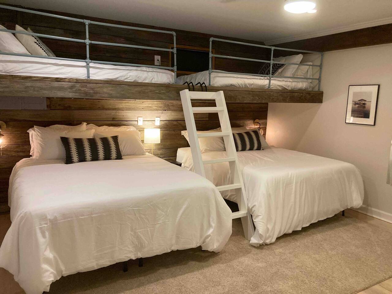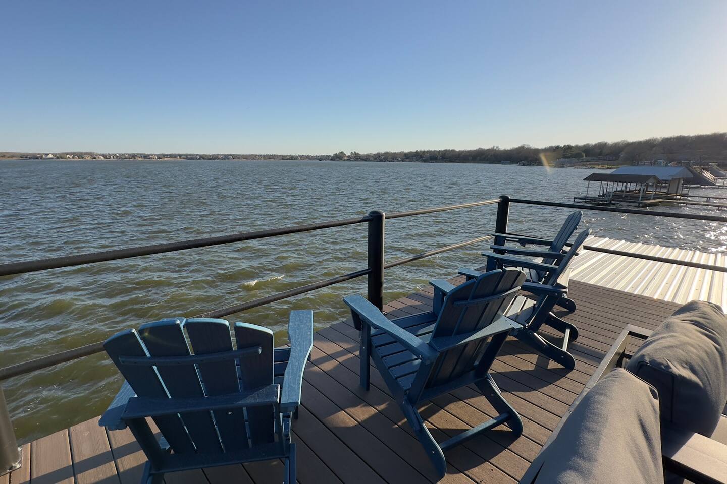 Everything is included in your stay except the jet ski's which are no accessible for guests. Parking The gravel drive way can easily accommodate 5 cars. No street parking. Outdoor Amenities Enjoy beautiful lake views from any point in the yard! -Outdoor shower (seasonal) -Ping Pong Table -Fire pit (firewood included) -Outdoor children’s playhouse -Hot tub -Spacious yard with lawn games -Grill -One open-air deck, patios -Ample outdoor seating and dining areas -Kayaks & paddleboards -Yard games (e.g., cornhole, croquet, bocce ball — game selection may vary) Indoor Living The open-concept main living area includes a fully stocked kitchen, dining space, and a cozy living room with a large sectional sofa and TV. Total table seating is for 10 with 4 bar stools at the kitchen island. We provide card and board games, throw blankets, and other comforts to make your stay relaxing and fun. Kitchen is fully stocked including a complimentary coffee bar! Bedrooms (5 total) Bedroom 1: Upstairs. King bed with optional twin trundle, closet with dresser and hanging space Bedroom 2: Upstairs. King bed, TV, closet with shelves and hanging space Bedroom 3: Upstairs. King bed, closet with dresser and hanging space Bedroom 4: Downstairs. King bed, closet with shelves, hanging space, pack-n-play, kids table & chairs & high chair in closet Bedroom 5: Downstairs. Bunk Room. 2 queen beds, 2 twin beds. Cabinet with shelves, hanging space,, black out shades. Downstairs living room: Large sectional, kids toys, walk out basement doors, pac man machine Bathrooms (3 total) Upstairs Bathroom: Single vanity, glass-enclosed shower Downstairs Bathroom 1: Single vanity, glass-enclosed shower Downstairs Bathroom 2: Single vanity, glass-enclosed shower, door to back porch. Laundry Washer, dryer, and laundry supplies (including detergent, iron, and ironing board) are available for guest use. -Liability waiver is required to confirm bookings. -Add on day access on check in/check out is an optional add-on pending availability. We do not offer refunds for low water levels or county burn bans limiting fire pit use. Off season for the lake is Oct-April and water levels are unpredictable.